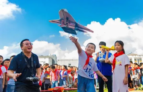 9月1日,江蘇如皋磨頭小學(xué)學(xué)生參與航模表演。徐慧 攝