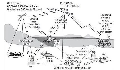 數(shù)據(jù)鏈傳輸系統(tǒng)是無人機(jī)的重要技術(shù)之一,負(fù)責(zé)完成對無人機(jī)遙控、遙測、跟蹤定位和傳感器傳輸,上行數(shù)據(jù)鏈實(shí)現(xiàn)對無人機(jī)遙控、下行數(shù)據(jù)鏈執(zhí)行遙測、數(shù)據(jù)傳輸功能。普通無人機(jī)大多采用定制視距數(shù)據(jù)鏈,而中高空、長航時無人機(jī)則都會采用視距和超視距衛(wèi)通數(shù)據(jù)鏈。