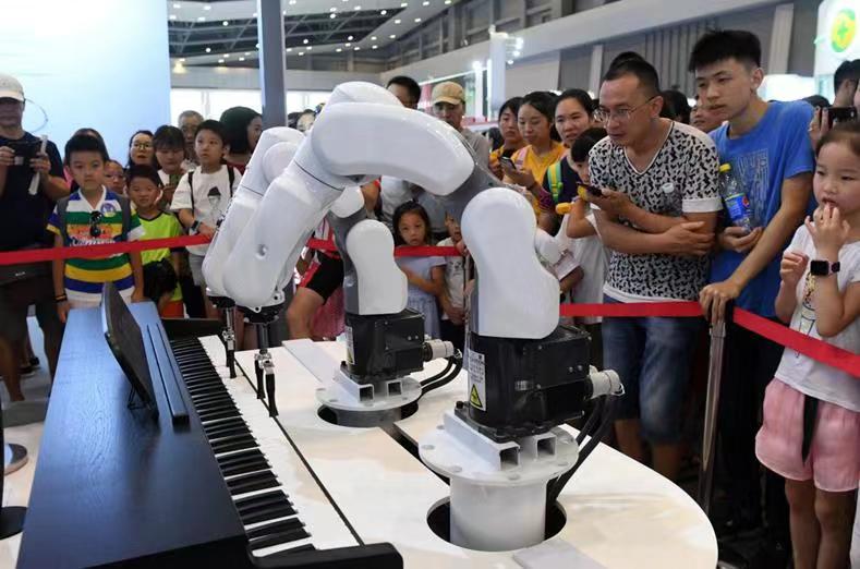機械臂樂隊”在智博會上演奏鋼琴曲。
