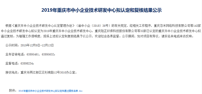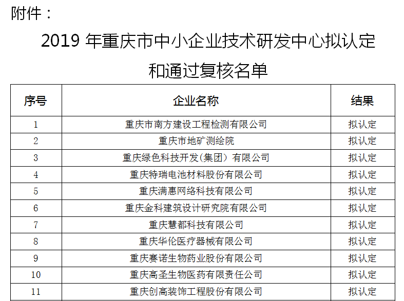 《重慶市中小企業(yè)技術(shù)研發(fā)中心認(rèn)定管理辦法》(渝中小企〔2018〕36號)的有關(guān)規(guī)定,經(jīng)相關(guān)工作程序,143家中小企業(yè)技術(shù)研發(fā)中心擬認(rèn)定為2019年重慶市中小企業(yè)技術(shù)研發(fā)中心,重慶樂教科技集團(tuán)股份有限公司等重慶市中小企業(yè)技術(shù)研發(fā)中心擬通過復(fù)核。